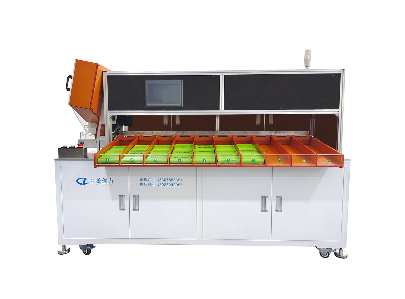 10檔通用電池分選機是一款用于圓柱電池的內阻、電壓等參數的測試分選設備,自帶高精密內阻、電壓自動測試系統,該設備根據在人機界面軟件上設定的內阻、電壓值精確的將電池送入到指定檔位,系統最多可實現10檔(9個OK檔,1個NG檔)分選。此設備每小時可測試配組電芯4500支左右,且結構設計簡潔大方,性能穩定。在市場上,是性價比很高的一款分選設備之一。